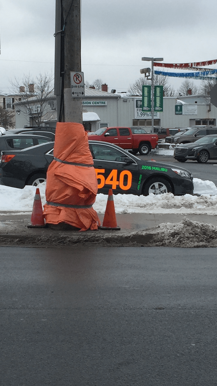 March 18, 2016 Date: March 18, 2016Author: Sara Category: Uncategorized Tags: Luke Van H, orange, plastic wrap, pylons, Sculpture, urban Post navigation ← March 17, 2016 March 19, 2016 → Guest Post: Luke Van H One Year Ago: March 18, 2015 Two Years Ago: March 18, 2014 Share this:Share Click to share on X (Opens in new window) X Click to share on Facebook (Opens in new window) Facebook Like Loading... Related